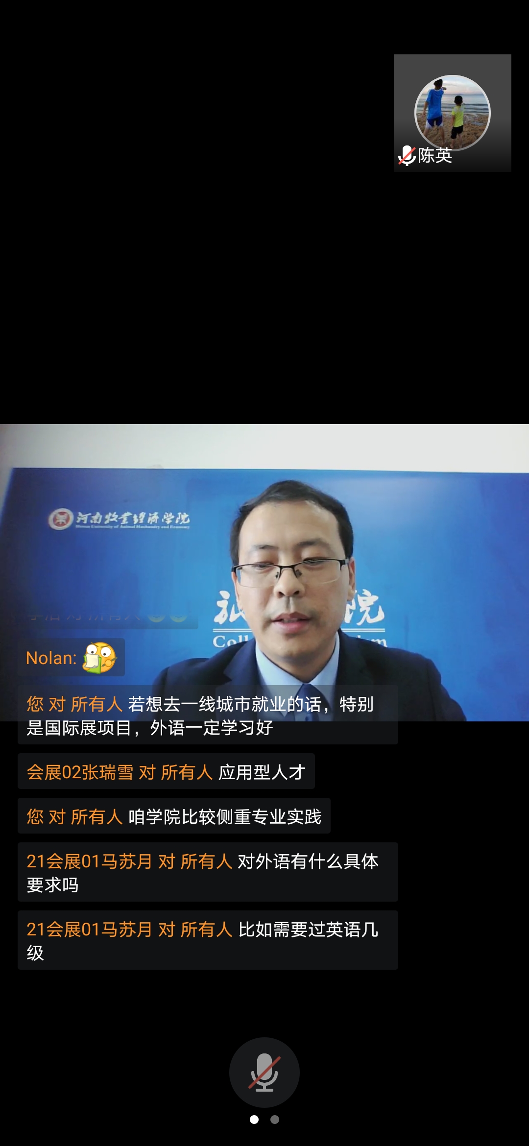 教学办主任陈英向新生介绍了新生新学期教学安排、教务管理系统的使用、线上教学平台的使用和学业修读注意的问题。为学生接下来线上教学的稳定开展打下了良好的基础。