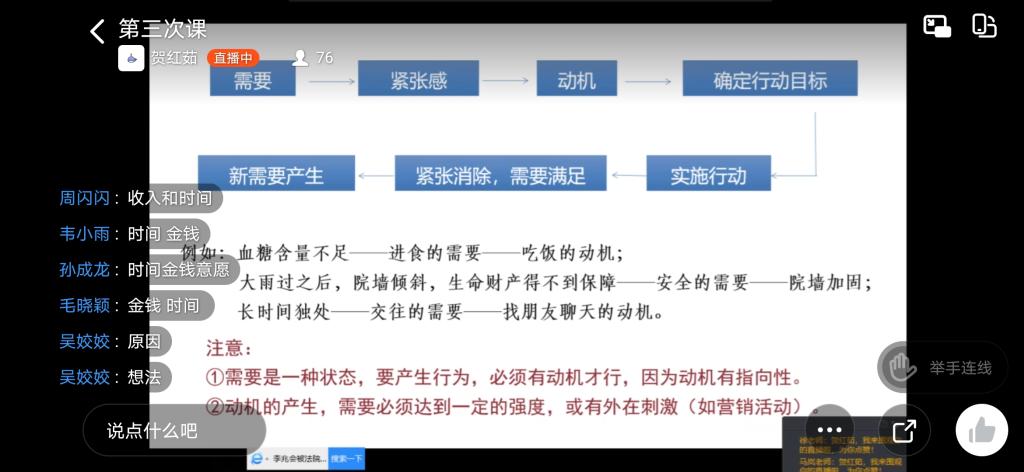 参与线上直播观摩的老师们,随后进行了讨论与交流,一致认为贺老师教学设计很合理,讲解深入浅出,能够融入课程思政内容,与学生互动较多, 调动了学生的积极性。同时对线上教学过程可能出现的网络、师生互动等问题进行了积极的探讨。最后王院长进行了总结,认为在保持传统教学优势的同时,要加强资料的收集整理和补充,将有质量的教学信息传达给学生,达到教学相长的目的。