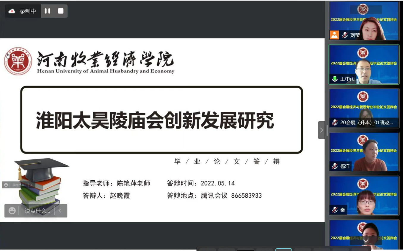 5月14日,在线买世界杯平台2022届会展经济与管理本科专业顺利完成214人毕业论文答辩工作。受疫情影响,经学院学术委员会研究,此次答辩师生全部通过腾讯会议采用线上方式进行,分为8个答辩组,院长王德静、副院长王中雨等48位教师参与全程答辩。答辩还吸引了2019级、2020级部分同学参与观摩。