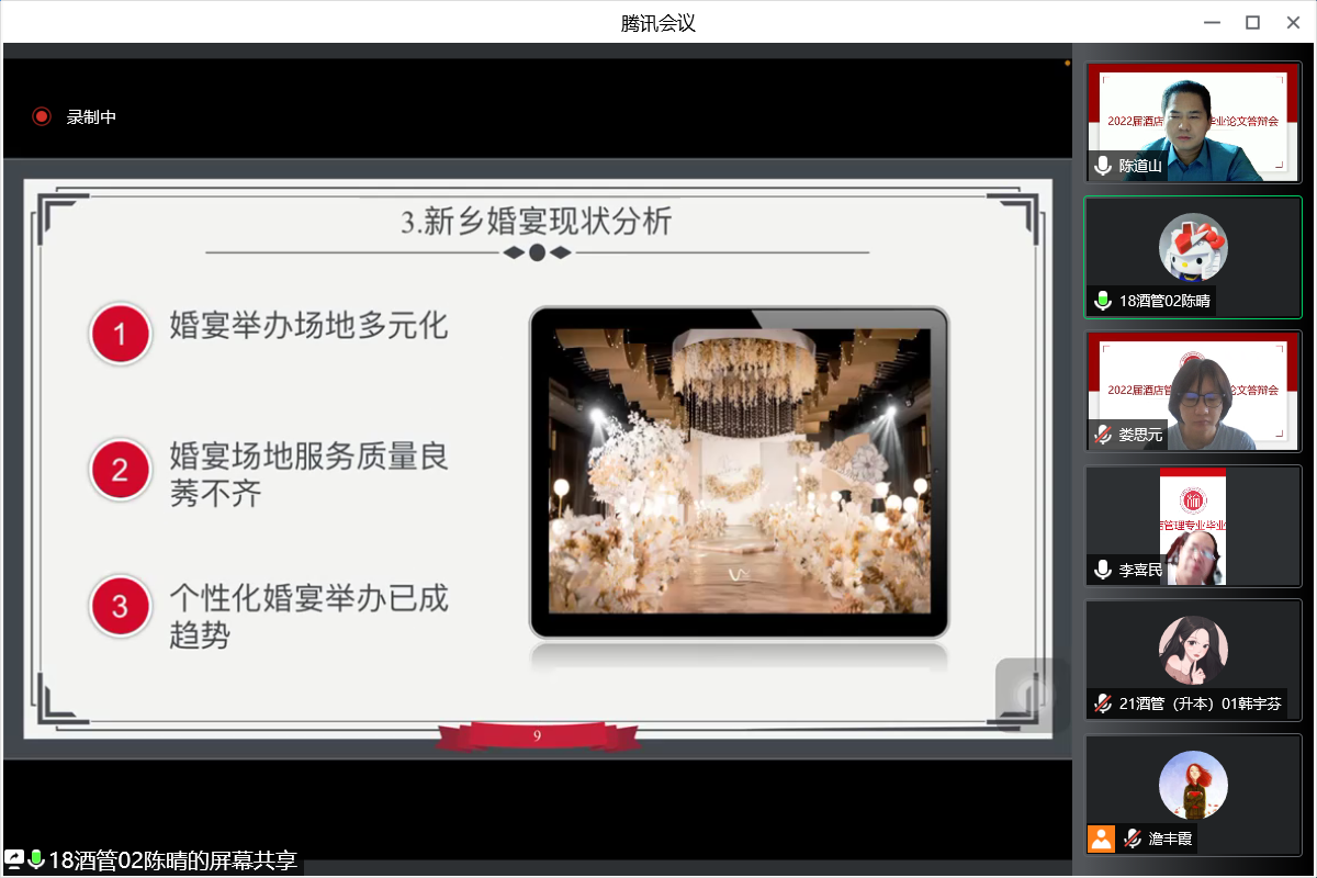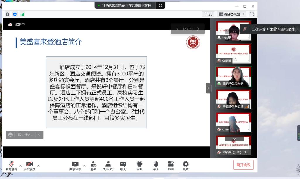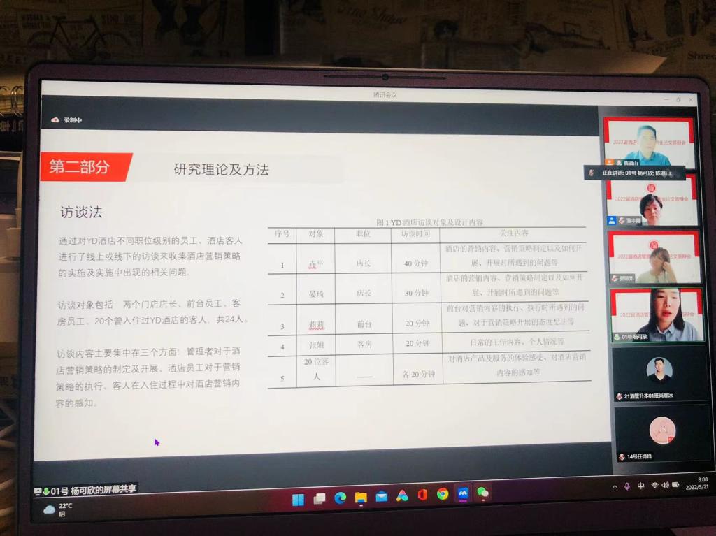 为切实保障本科教学质量,最大限度降低疫情对学生毕业的影响,5月21日,在线买世界杯平台2022届酒店管理本科专业顺利完成187名毕业生毕业论文答辩工作。本次答辩师生全部通过腾讯会议采用线上方式进行,分为7个答辩组,院长王德静、副院长王中雨等42位教师参与全程答辩。