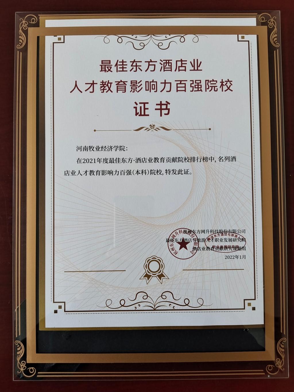 由国内权威专业旅游服务业招聘求职平台——最佳东方主办的首届“最佳东方酒店业职教影响力百强院校”排行近期在杭州揭晓。在2021年度最佳东方•酒店业教育贡献院校排行榜中,世界杯荣获酒店业人才教育影响力百强(本科)院校。