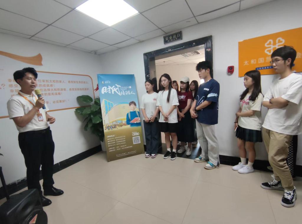 6月25号上午师生在郑州太和国旅国际旅行社4名研学导师的带领下,赴许昌参观调研该企业打造成熟市场反馈效果较好的胖东来企业文化研学线路。下午赴郑州太和国旅国际旅行社参观座谈,会上企业负责人介绍了企业的发展现状、业务模板、岗位设置以及薪酬待遇等,并和学生进行了深入的交谈。现场气氛活跃,学生积极发言,谈感受展未来,对研学旅行的良好发展态势充满信心。