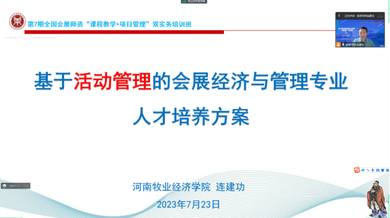 7月22-25日,由上海对外经贸大学主办,上海对外经贸大学会展与传播学院、中国会展经济研究会会展教育培训工作委员会、长三角会展研究院承办的第7期全国会展专业师资“课程教学+项目管理”双实务培训班线上成功举办,来自全国80余所高校的180多名从事会展、旅游、传播等相关专业教学、科研工作的学者齐聚云端,参加此次培训。世界杯会展经济与管理教研室全体教师4天时间全程参与培训,聆听业界学界专家报告,参与行业教育研讨,受益匪浅。