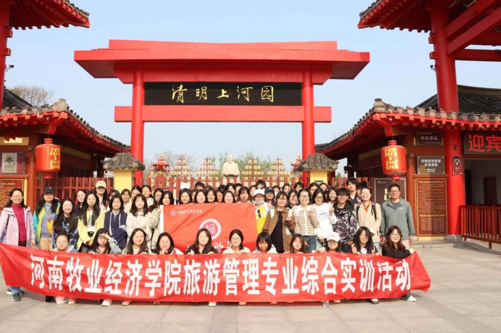 2024年4月9日,在线买世界杯平台2023级旅游管理专业学生在旅游教研室老师带领下前往清明上河园开展行业实训调研活动。