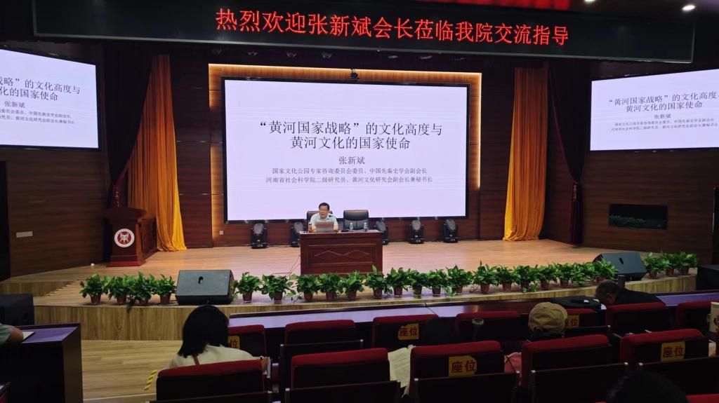 受在线买世界杯平台之邀,国家文化公园专家咨询委员会委员、中国先秦史学会副会长、黄河文化研究会副会长兼秘书长、河南省社会科学院历史与考古研究所原所长张新斌研究员,于5月9日下午15:30在龙子湖校区合100报告厅做了一场“‘黄河国家战略’的文化高度与黄河文化的国家使命”的报告,特邀嘉宾(华北水利水电大学原党委书记朱海风教授)与世界杯部分师生聆听了报告,本次报告由陈道山副院长主持。