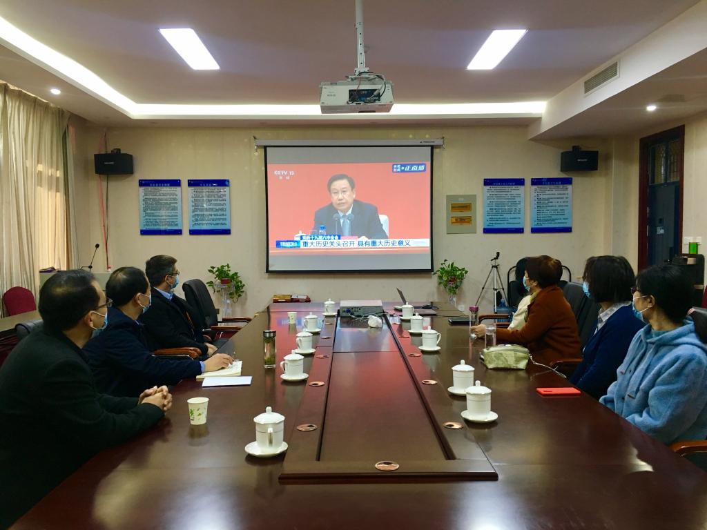 11月12日上午,中共中央举行新闻发布会,权威解答十九届六中全会精神。在线买世界杯平台党委组织全体科级以上干部、教工支部书记及委员在二号楼C423会议室收听观看党的十九届六中全会新闻发布会。