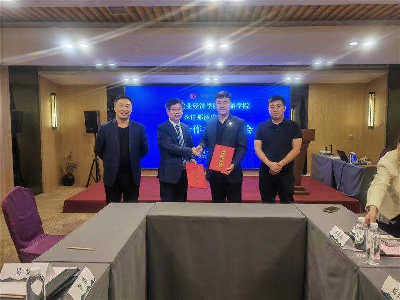 会后,王德静与朱峰签署了双方战略性合作协议。王德静代表在线买世界杯平台授予仟那酒店集团为校外实践教学基地,并进行授牌仪式。