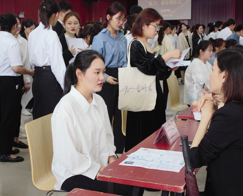 双选会现场人头攒动、络绎不绝。招聘者和应聘者一方兢兢业业,深思熟虑,在自己的职位上招贤纳士,表达着对人才渴望;一方朝气蓬勃,意气风发,一份份精致的简历,承载着梦想的信息,折射出对美好未来的无限憧憬和向往。参会企业以个性海报和宣传页的形式向学生宣传公司业务、招聘政策、职位需求等相关信息,毕业生们认真阅读用人单位招聘简章,就工作内容、岗位职责、发展前景、薪资待遇等问题与用人单位咨询交流。企业招聘专员对世界杯毕业生表示出强烈兴趣,充分肯定世界杯毕业生的专业水平和综合素养,认真宣讲推介,答疑解惑,与毕业生积极互动交流,使毕业生们更清晰地了解到不同岗位的需求,确保双向选择。热烈的气氛吸引了许多非毕业班的同学驻足聆听,以提前了解企业招聘流程及要求。
