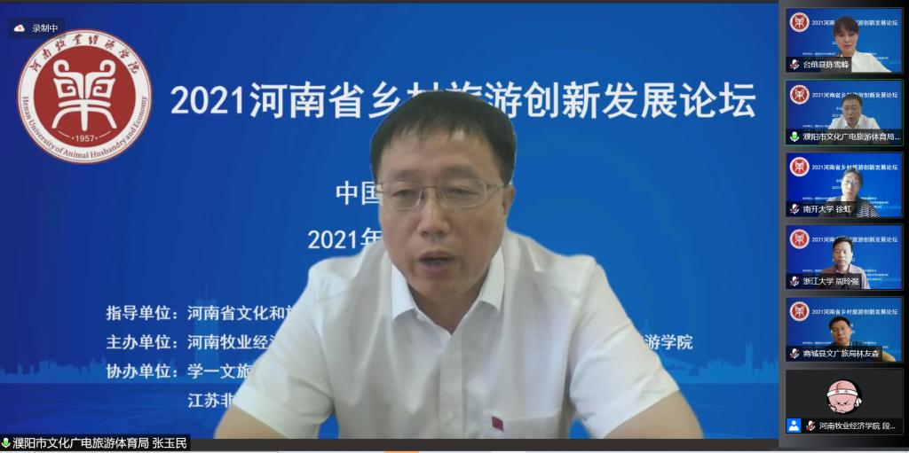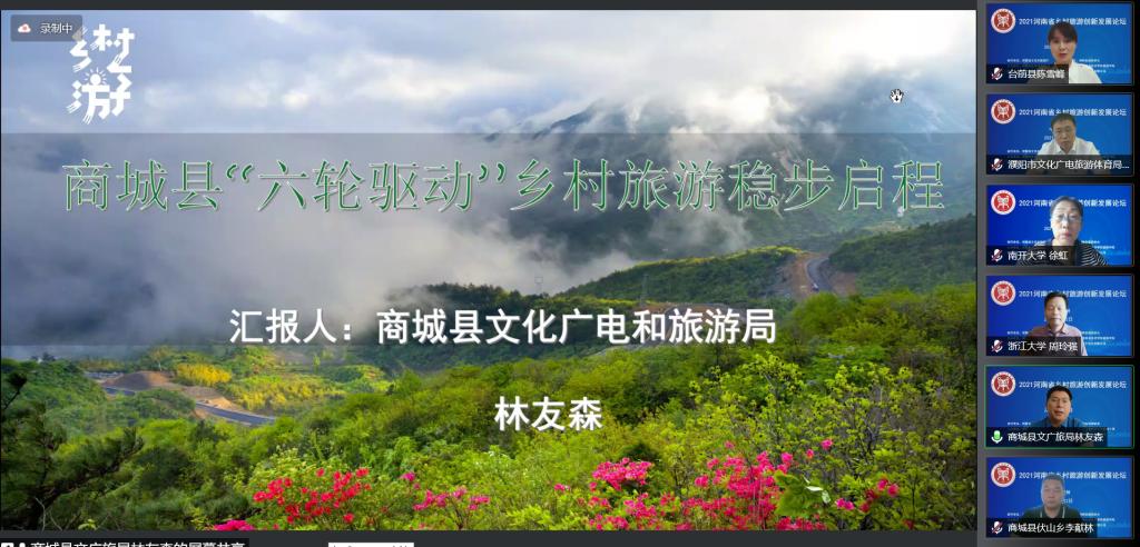 濮阳市文化和旅游局张玉民书记、商城县文化广电和旅游局林友森局长分别介绍了本地区旅游业发展情况,商城县伏山乡党委书记李献林、台前县夹河乡文化服务中心主任陈雪峰分别分享了国家级美丽休闲乡村——里罗城村和“百美村宿”——姜庄村发展乡村旅游的思路与做法。在互动环节,大家踊跃提问,就乡村旅游高质量发展的理论和现实问题与专家进行了颇有深度的互动交流。