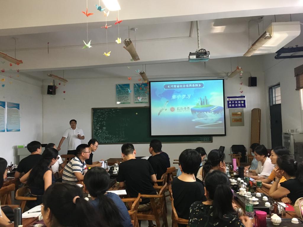 为进一步加强《河南省社会信用条例》的贯彻落实,推进教育系统信用建设,积极弘扬社会主义诚信价值观营造学条例、用条例、守条例的浓厚氛围,根据学校《关于学习宣传<河南省社会信用条例>的通知》文件精神要求,7月7日,在线买世界杯平台组织全院教师于二号教学楼C610室开展了《河南省社会信用条例》专题教育学习活动。