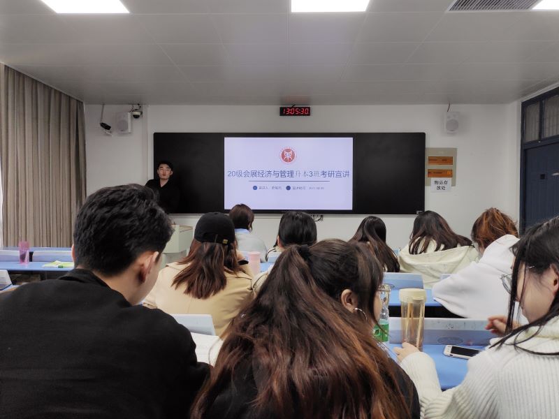 宣讲伊始,陈老师以专科、本科、硕士研究生、博士研究生的学历差距与区别为切入点,从校园与社会等不同层面,强调了考研的重要性,认为考研对于同学们来说不仅是个人发展的需要,也是对社会发展的需要。接下来,陈老师结合自身考研经历,针对考研择校、专业选择、初试备考等方面做了详细的介绍与建议,提醒同学们在选择考研学校与专业时,要充分考虑专业特点、未来规划、学校政策和报考难度等因素。同时,对复试环节考生的准备工作、英语口语、专业课笔试、综合面试等方面,陈老师从应试方法与考试侧重点的不同做了细致解答。宣讲最后还设置了问答环节,面对跨专业考研同学的不同疑问,陈老师通过幽默诙谐的表达方式,有针对性地为同学们答疑解惑,赢得了在场同学的阵阵掌声。整个现场热情洋溢、气氛活跃,在同学们热烈的掌声中本次考研宣讲大会圆满结束。