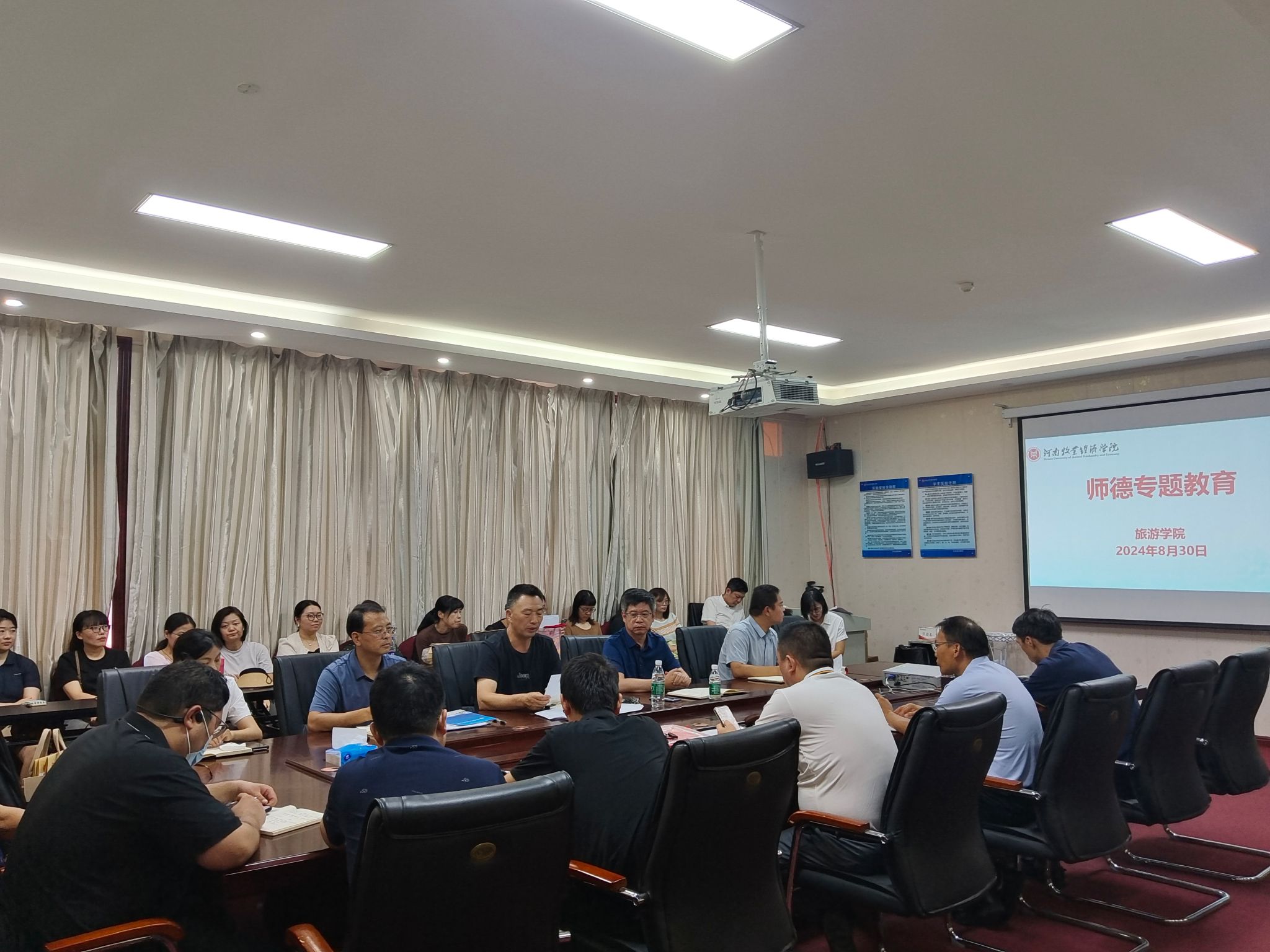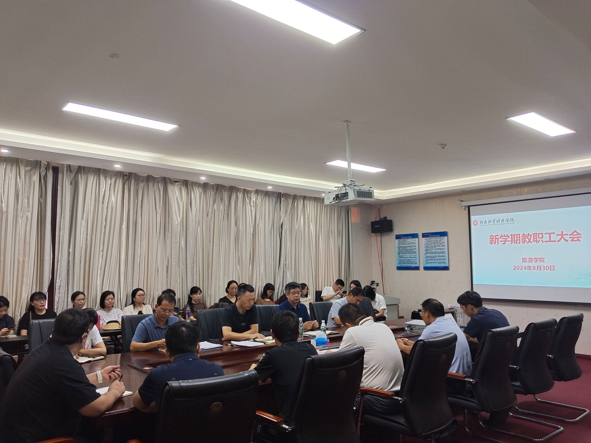 8月30日上午,在线买世界杯平台在二号楼C423议室召开新学期全体教职工大会,传达学校2024年秋季学期中层干部会议精神,安排部署新学期工作。会议由院长王德静主持,全体教职工参会。