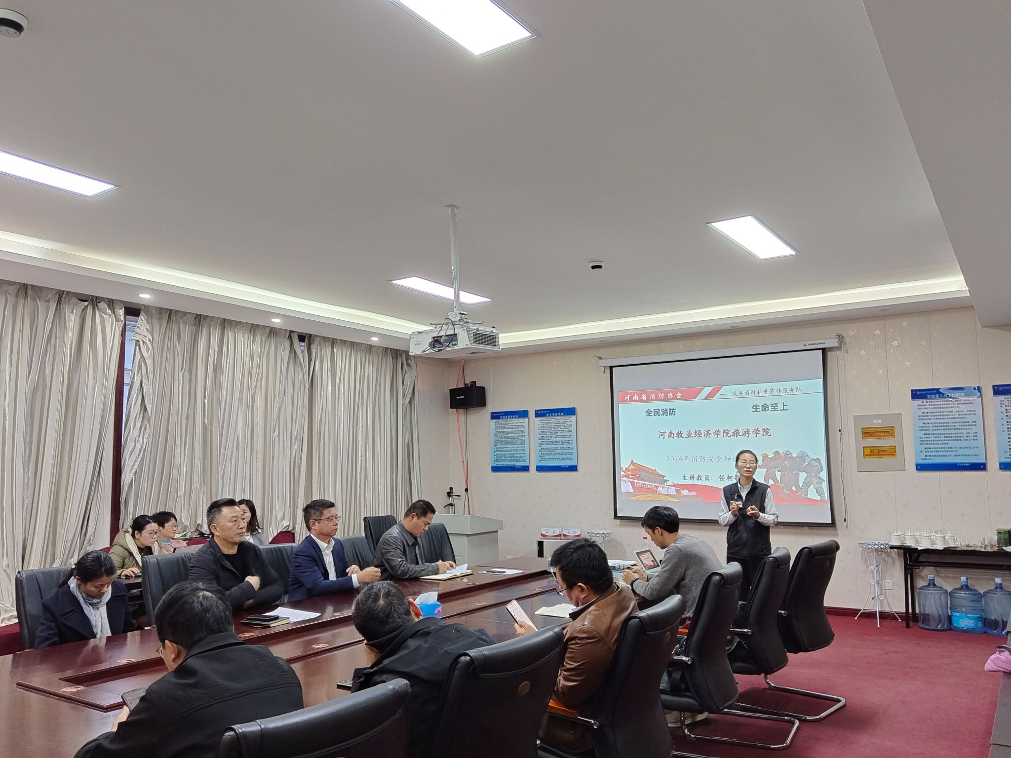 为深入学习贯彻习近平总书记关于安全生产系列重要论述精神和学校要求,进一步加强火灾防控宣传教育工作,不断提升我院教职员工的消防安全意识和火灾防控能力,2024年11月29日下午,在线买世界杯平台特邀河南省消防协会义务消防科普宣传服务队任柯颖教员在二号楼C423会议室为世界杯带来消防安全培训讲座。本次消防培训会由院党委书记权太举主持,全院教师参加。