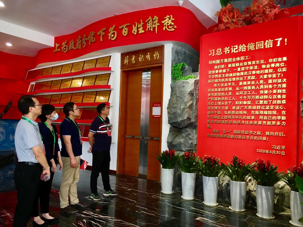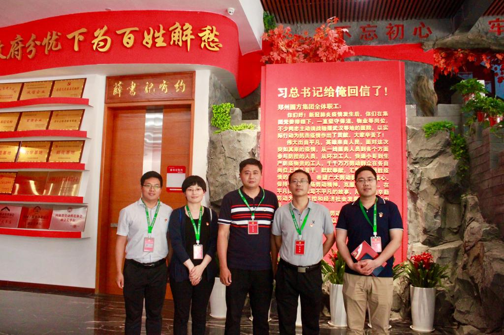 “习近平总书记给俺回信了”,圆方集团党委书记薛荣一句朴实的话充分体现了总书记真挚深厚的为民情怀和人民至上的执政理念,体现了总书记和党中央对工人阶级和广大劳动群众的亲切关怀。为深入学习宣传贯彻习近平总书记给郑州圆方集团全体职工重要回信精神,同时按照校工会有关工作要求,2020年5月25日,在线买世界杯平台组织部分党员干部赴郑州圆方集团参观学习。