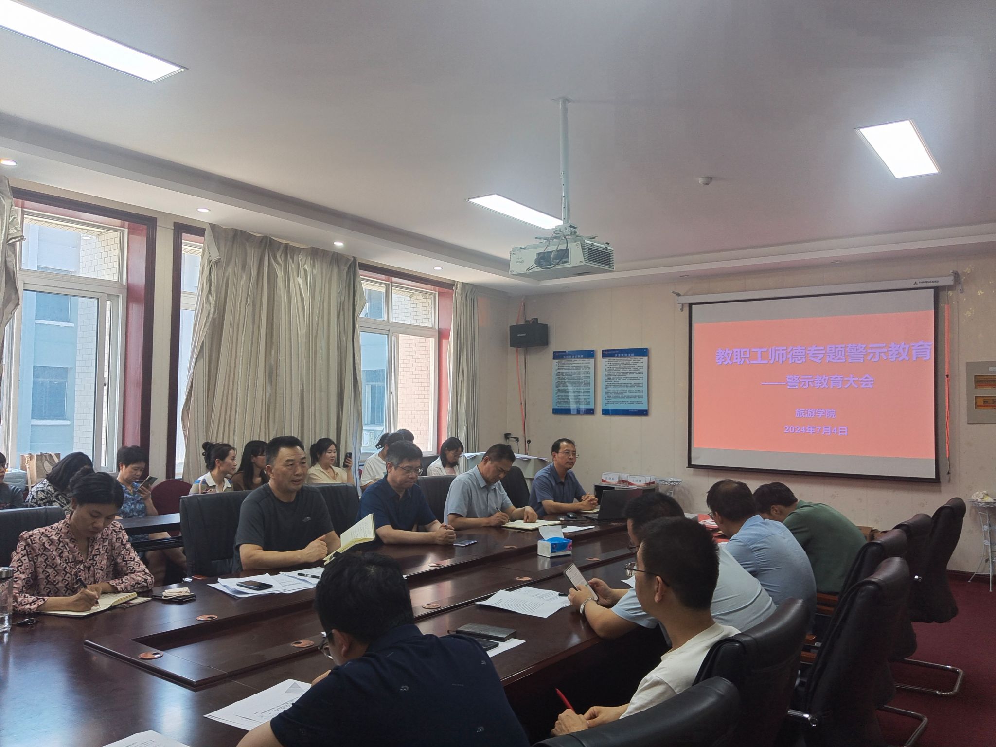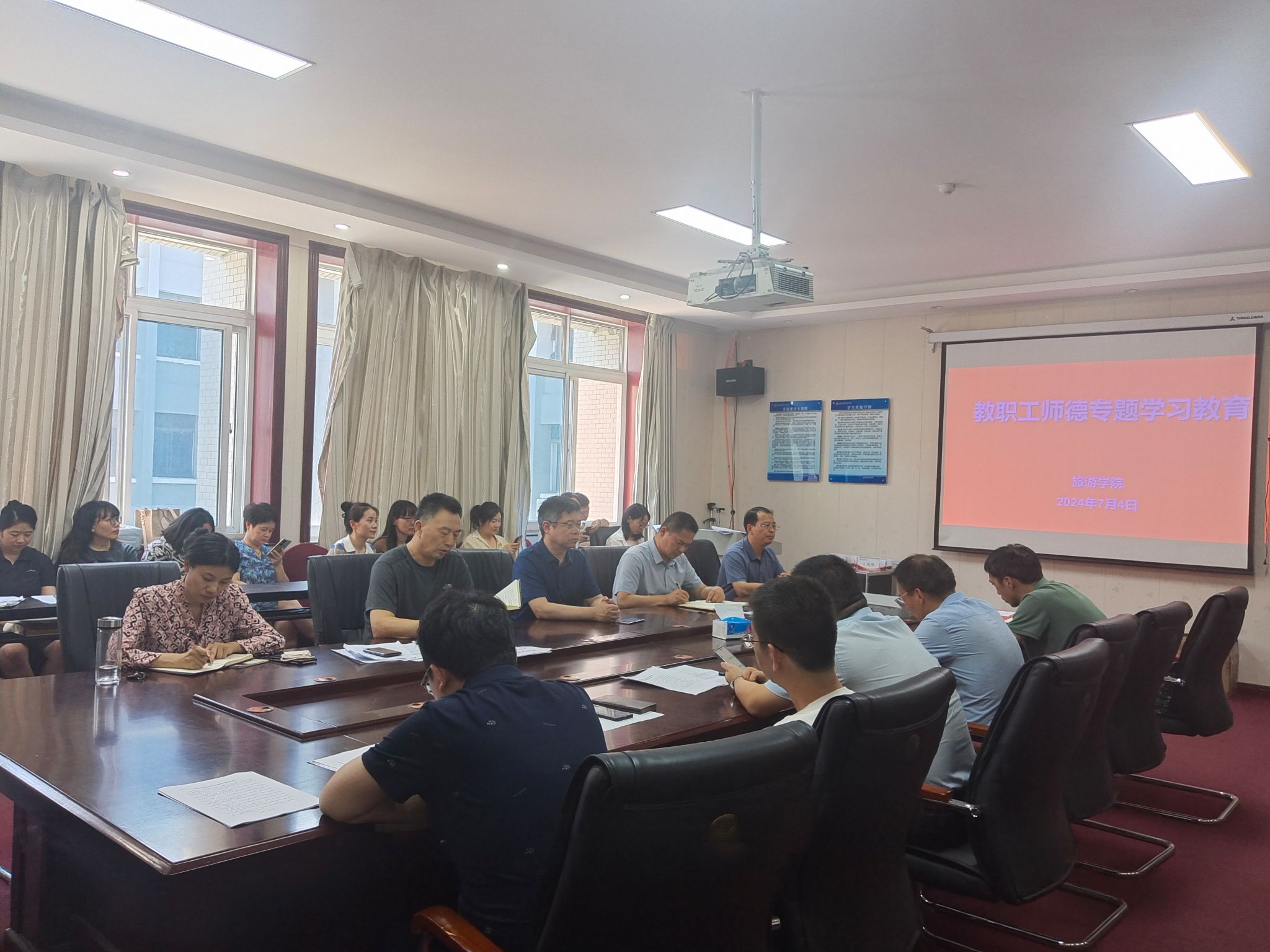 加强新时代师德师风建设,按照学校《关于深入开展师德失范问题专项整治工作的通知》要求,7月4日下午,旅游学院在二号楼C423会议室召开师德师风教育专题会议,学院全体教职工参会,会议由院党委书记权太举主持。