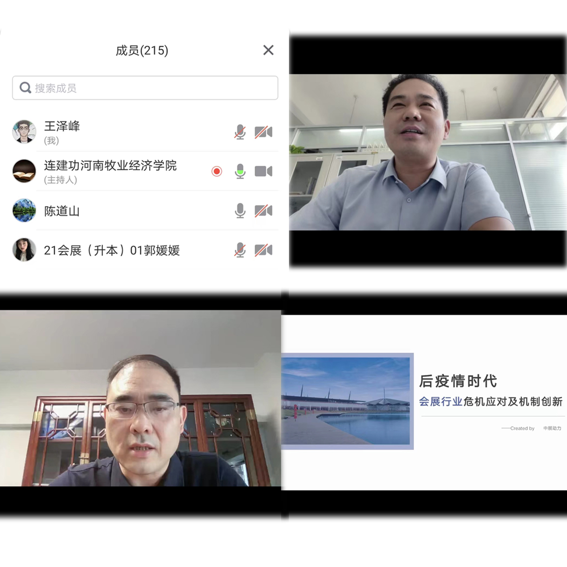 应在线买世界杯平台邀请,河南中展动力展览有限公司总经理、郑州市会展行业协会副会长、在线买世界杯平台在线买世界杯平台专业指导委员会委员宋传强先生,于9月15日下午为世界杯师生做了一场“后疫情时代会展行业危机应对与机制创新”的线上讲座。在线买世界杯平台会展经济与管理教研室老师,21、22级会展专业学生认真聆听了讲座,讲座由学院副院长陈道山主持。