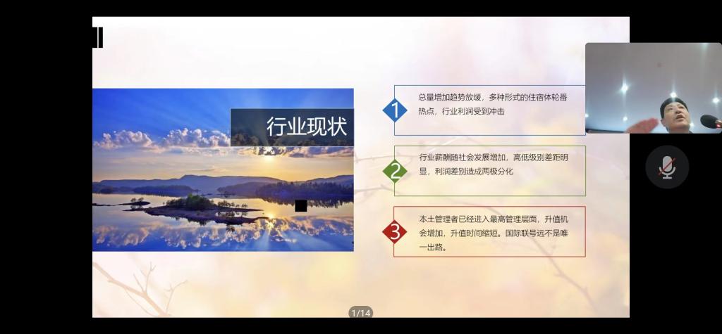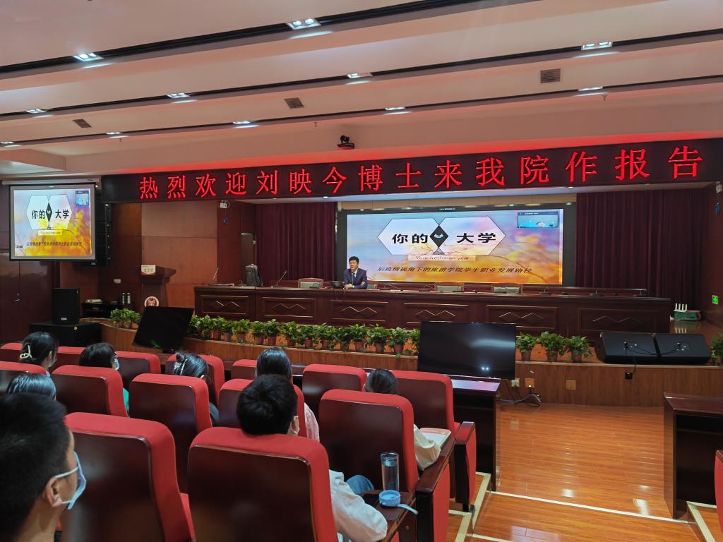 9月24日下午,受世界杯邀请,河南仟那酒店集团首席战略官、国家级民宿等级评定专家、河南省旅游协会饭店业分会副会长刘映今博士来世界杯为师生做一场“后疫情视角下酒店管理专业学生的职业发展路径”的专题讲座。讲座线上线下同步进行,世界杯酒店管理专业近300名师生参加了本次讲座。讲座由世界杯副院长陈道山主持。