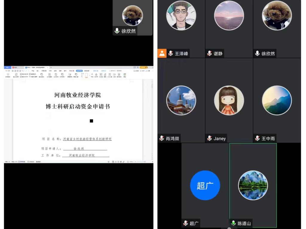 会议开始首先由徐欣然博士详细汇报了本次项目的申报内容。然后专家组分别对徐博士的河南省乡村旅游经营体系创新研究的内容提出了意见与建议,并对出现的问题及时纠正。