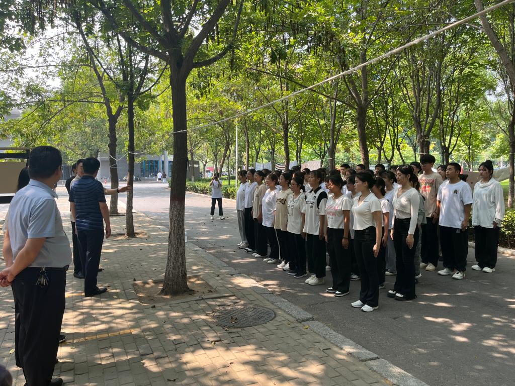 院领导一行观摩了学生的训练情况,并与教官亲切交流,询问了军训的进度与安排,了解了训练过程中学生的思想动态和身体状况。学院领导对教官的辛勤付出表示感谢,对参训学生斗志昂扬、不畏艰苦的精神面貌给予充分肯定,并鼓励学生要通过军训激发爱国主义热情,学习军人坚忍不拔的毅力和迎难而上的拼搏精神,用实际行动展现新时代青年大学生应有的精神风貌;希望参训学生继续发扬不怕苦、不怕累的精神,展现严谨认真的训练作风,并将艰苦军训中学会的严守纪律、吃苦耐劳的精神,带到今后的学习生活当中。