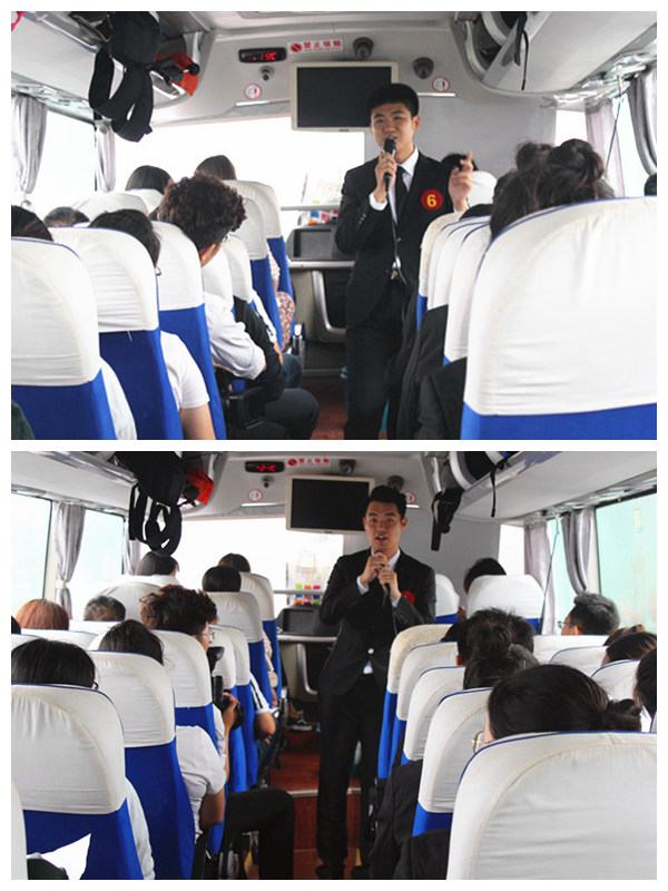 此次决赛将不同于预赛、复赛等环节在室内的讲解性选拔,而是带领他们真正的走入实地景点,走进小浪底风景区,以更为真实的场景、更为专业的姿态选拔出最具魅力的导游之星。此次决赛分为四个环节,分别为“自我介绍”、“沿途讲解”、“才艺展示”、“景点介绍”前三个环节将于前往景点的途中举行。陈书记怀着无比激动的心情为选手们鼓劲加油,希望这十位参赛选手展示出最靓丽的风采。选手们没有辜负各位老师及同学的期望,更是卯足了劲,无限魅力尽情展示。沿途讲解环节,专业之中不失文化底蕴,文化底蕴之中又不失科学严谨,科学严谨之中又不失风趣幽默,一片欢声笑语,而唱歌、手语舞、绕口令、小游戏等才艺展示和互动环节使车内的气氛异常活跃。