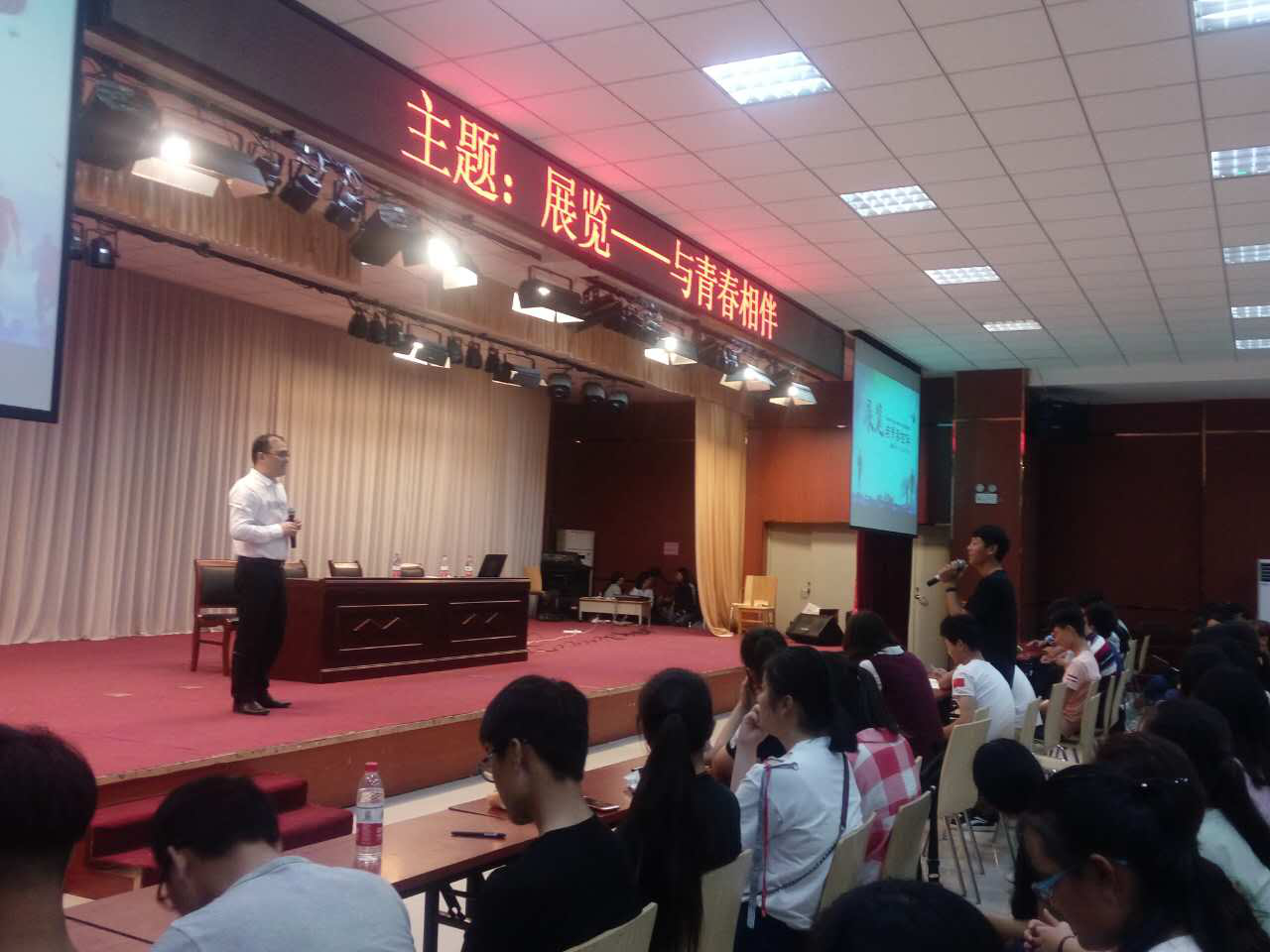 9月25日上午,特邀河南中展动力展览有限公司的总经理宋传强在大学生活动中心为学生们做了一场主题为“展览——与青春相伴”的专题报告。宋总结合自己的从业的亲身经历,阐述了中国会展业的发展变化和郑州会展业的发展现状。他介绍,随着郑州航空港综合经济试验区、河南自由经济贸易区的确立和国家一路一带战略的实施,郑州市会展业发展潜力巨大。最后,宋总又和同学们进行了互动,回答了学生在职业选择、素质提升等方面的问题。宋总精彩的报告让学生对会展行业充满希望。