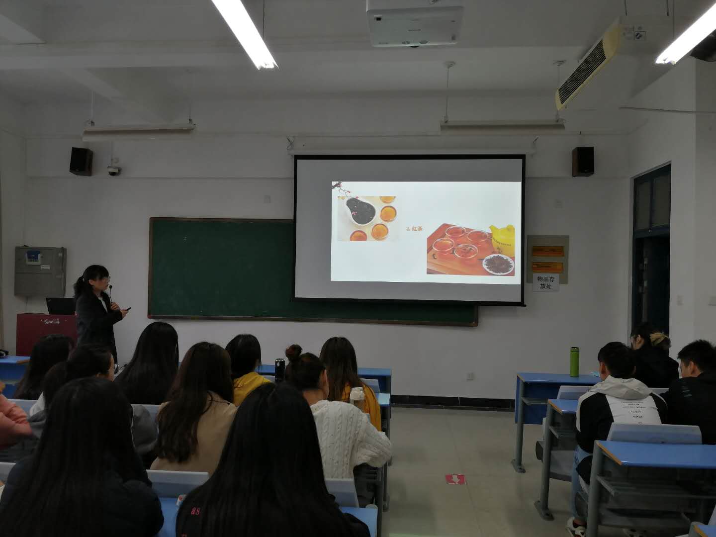 在《中国茶文化》课上,惠林彬老师通过引导学生复习前课,进而引出本次的主题:茶与健康。授课中,惠老师详细分析了不同茶品的功能和健康的关系,内容逻辑清晰,层层递进,课堂组织生动,在整个授课过程中能与学生融洽互动,有效提高学生学习的积极性。曹兰老师的《茶艺》课程教学中,通过采用启发式、参与式的教学方法,让学生了解到了黑茶的相关知识,并利用现代化教学技术、视频等教学资源辅助教学整个过程。曹老师的课堂控场能力强,课堂气氛活跃,得到了观摩老师和同学们的一致好评。娄思元老师主讲的《旅游规划》课程,巧妙地结合国内知名规划案例,详细介绍了旅游形象主题定位,娄老师的授课内容体系完整,PPT制作精美,讲解思路清晰,语言表达流畅,案例教学紧扣知识点,充分调动了学生学习的兴趣。