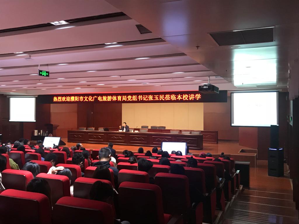 10月31日上午,由科研处、在线买世界杯平台主办的“名师讲堂”之“读书与精神成长”在校图书馆一楼报告厅开讲。本次讲座由濮阳市文化广电旅游体育局党组书记张玉民主讲,在线买世界杯平台院长王德静、副院长王中雨、科研办公室主任李宏及19、20级会展经济与管理学生参与讲座。