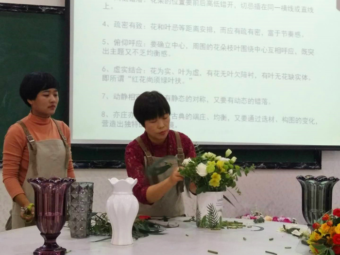 随着人们对生活品质的重视鲜花以其自然、品味、健康深得人心,更为家庭增加浪漫和温馨的情调。此次活动通知发出后,全院女教师纷纷踊跃报名,两个小时的现场活动大家相互交流插花心得,脸上都洋溢着幸福的笑容,整个活动过程气氛热烈。