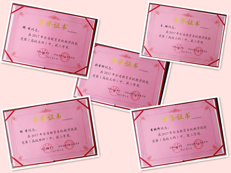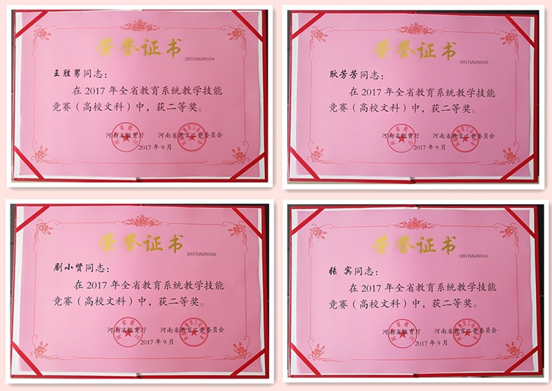 日前,从省教育厅、省教育工会联合下发的《关于表彰2017年度全省教学技能竞赛获奖个人的决定》(豫教工〔2017〕17号)中获悉,世界杯教师凭借扎实的专业功底、娴熟的教学技能和良好的教学效果,取得了3个一等奖、4个二等奖、5个三等奖的优异成绩,展示了良好的师风和教风,为学校赢得了荣誉。