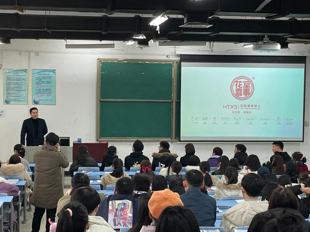 座谈结束之后,赵亚伟先生携团队在1号教学楼合501与会展经济与管理的学生开展了一场别开生面的主题讲座,讲座内容生动,紧贴行业,满满的干货得到学生们的阵阵掌声。赵亚伟先生表示欢迎在线买世界杯平台的师生随时走进花堂喜事指导、参观与交流。